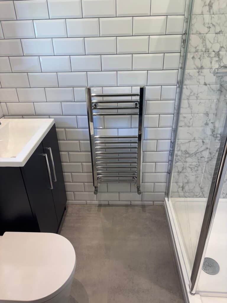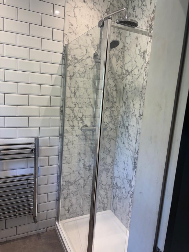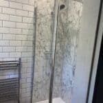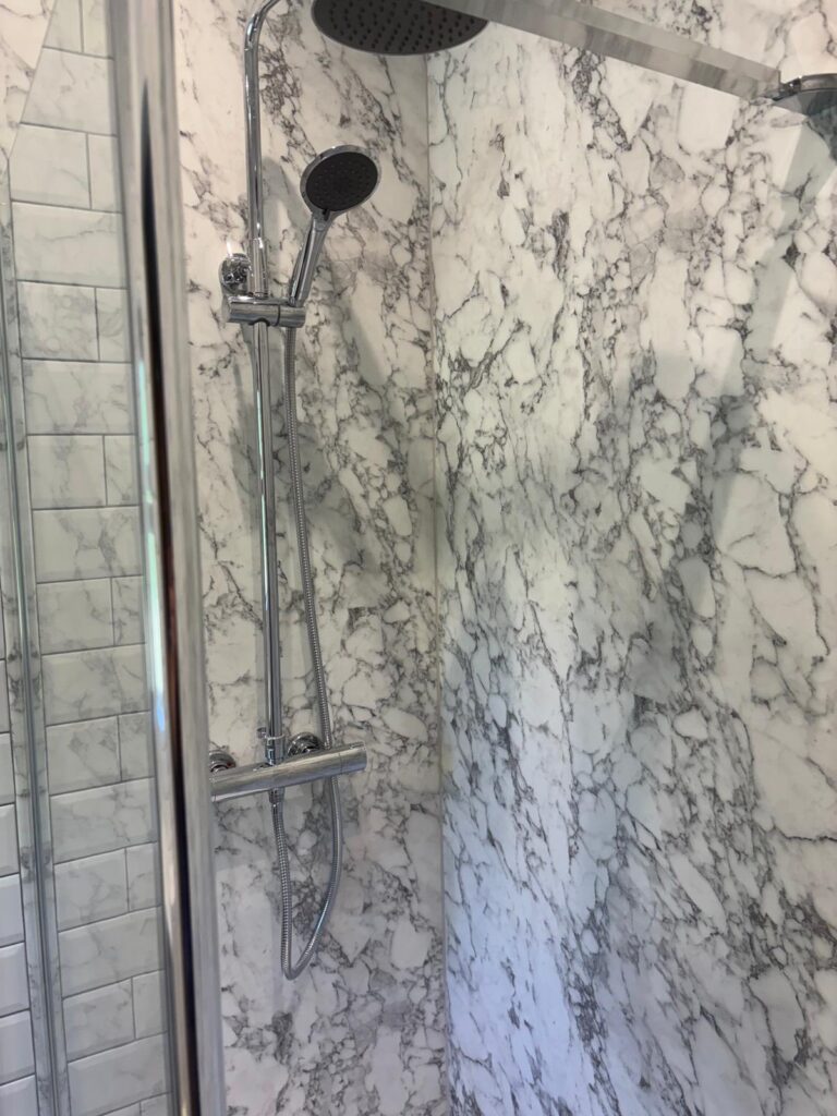 Classic white metro tiles bring that timeless, clean aesthetic to this bathroom, whilst the gorgeous marble effect shower panels add a touch of luxury—and the best part? They’re super easy to clean, making this space as practical as it is beautiful. Whether you’re starting your day or winding down, this space offers the perfect balance of style and function.