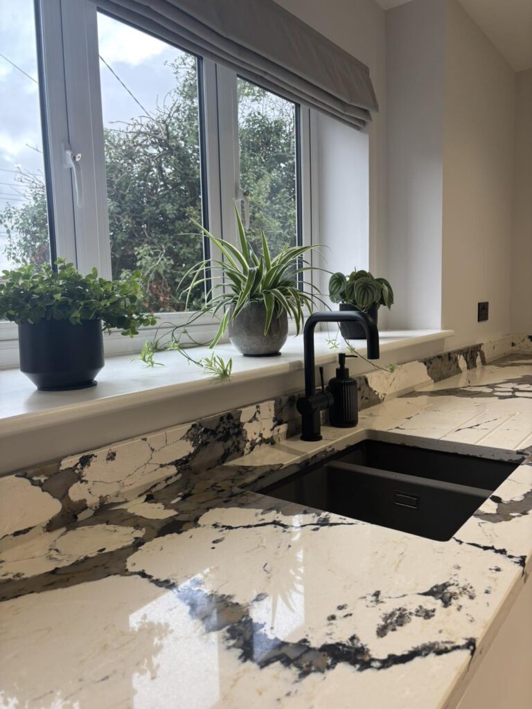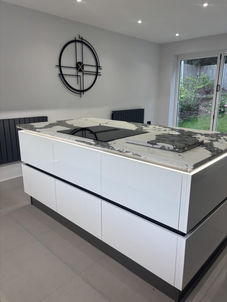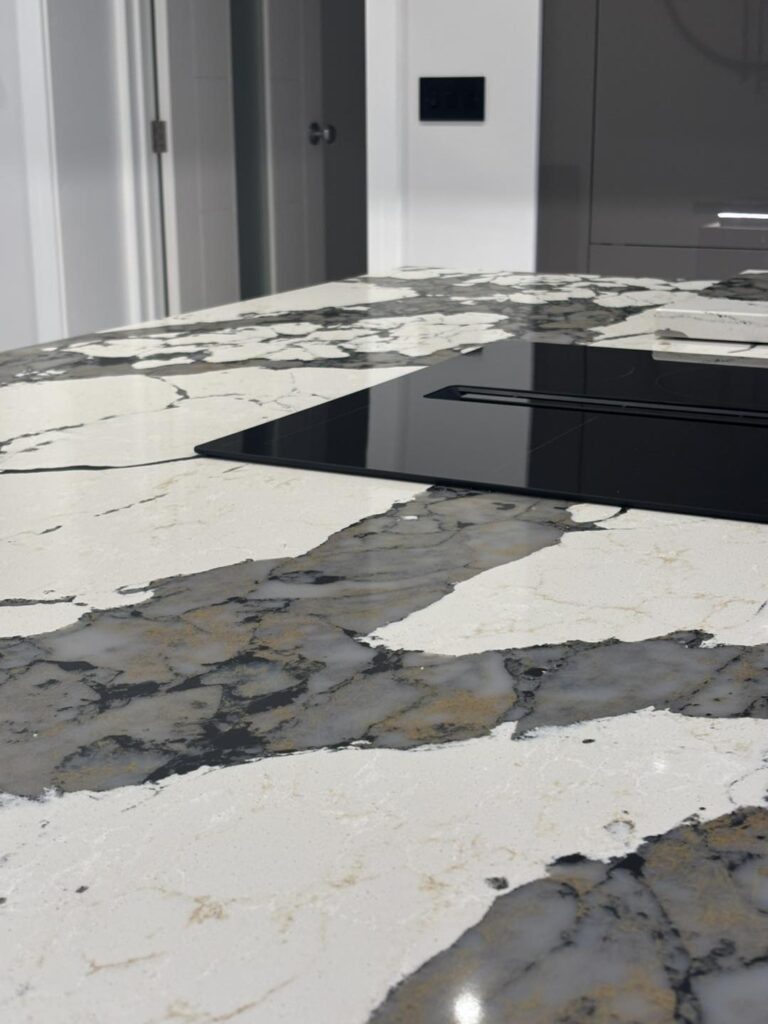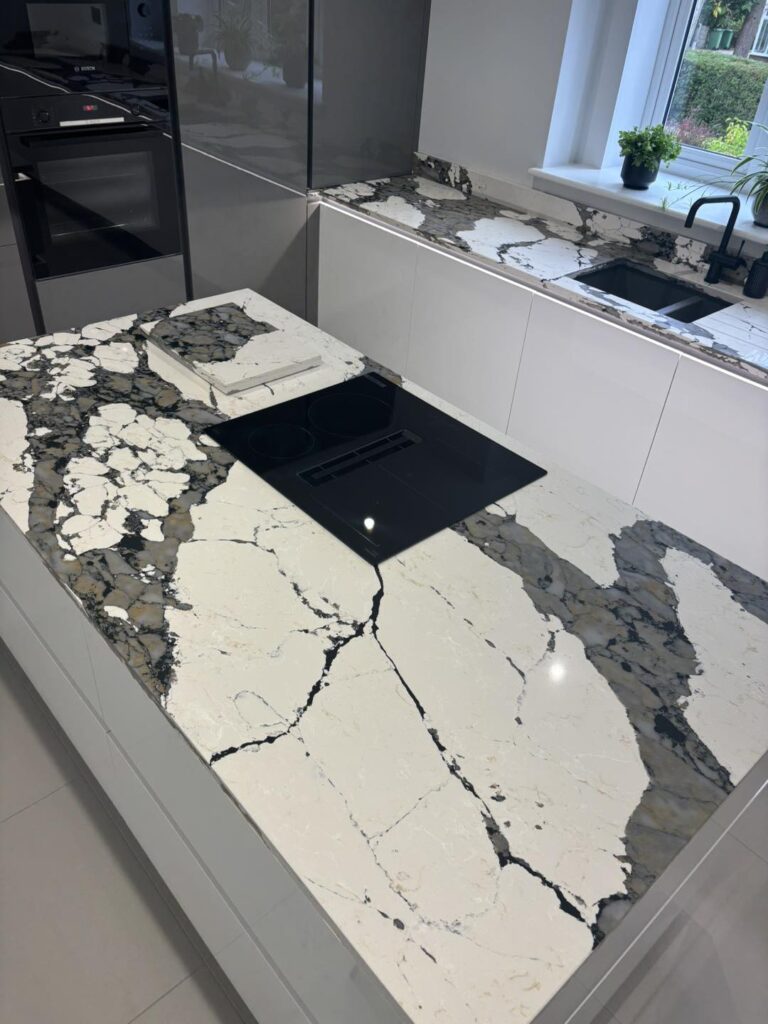 Just completed this stunning kitchen featuring bold and unique Macchia Vecchia quartz worktops, this space is all about making a statement. The dramatic veining brings so much character and elegance — a true centrepiece of the design.